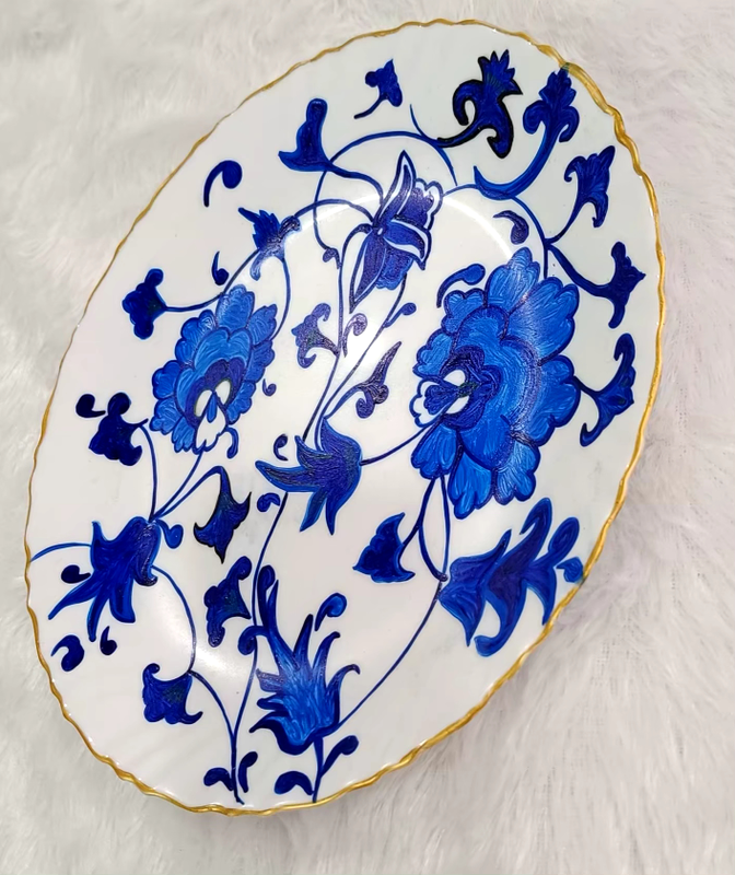 ceramic wall plate beautifully painted in floral art Design. Brusto colors are used to get the smooth texture, art varnish is used to lock the paint and it has glossy texture, hanging cllip is fixed to hand it in your desired wall.